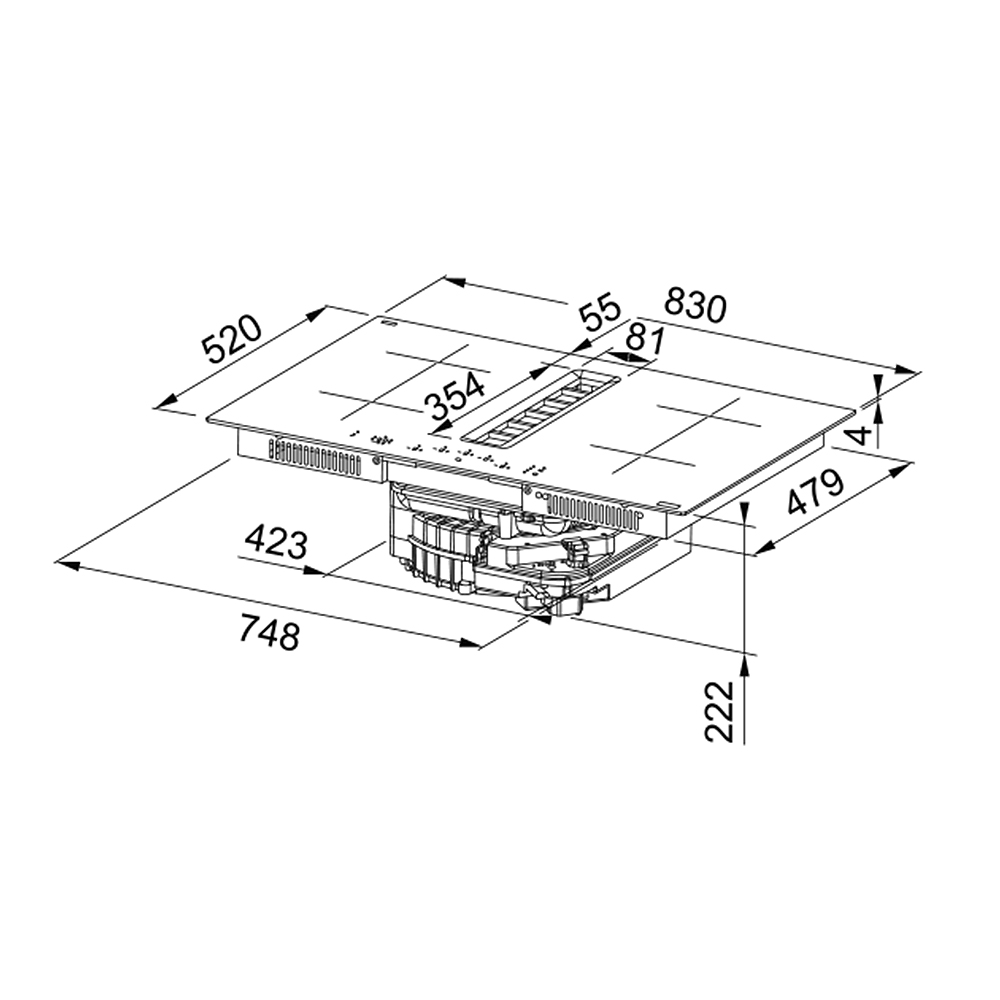 Odvod zraka sa stražnje strane. Visina cokla min. 60 mm. Isporučuje se uz filtracijsku izvedbu nape.